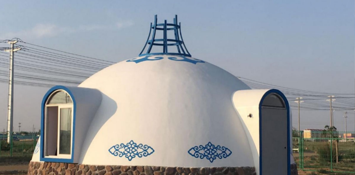 保溫蒙古包是一種新型節(jié)能組合式蒙古包,由150mm厚聚氨脂保溫材料模壓成型。采用組合式結(jié)構(gòu),無龍骨和支架,天窗、頂板和墻面均為預制結(jié)構(gòu),實現(xiàn)冬天保暖、夏天隔熱涼爽的效果,同時具有無毒、隔熱、抗大風、防震等特點。該蒙古包安裝方便快捷,可有效地縮短建設工期,施工難度小,便于拆裝和搬遷運輸。保溫、隔熱、抗風各項指標明顯優(yōu)于傳統(tǒng)蒙古包,其保溫效果是普通磚瓦建筑的40倍,適合高寒野外和草原牧區(qū)等使用;既可作為家庭住房單獨使用,也可以用于野外極地作業(yè)、軍營或旅游景點、娛樂、餐飲等場所使用。該蒙古包適合配以太陽能光伏和風力發(fā)電機實現(xiàn)采暖、降溫的零碳排放。