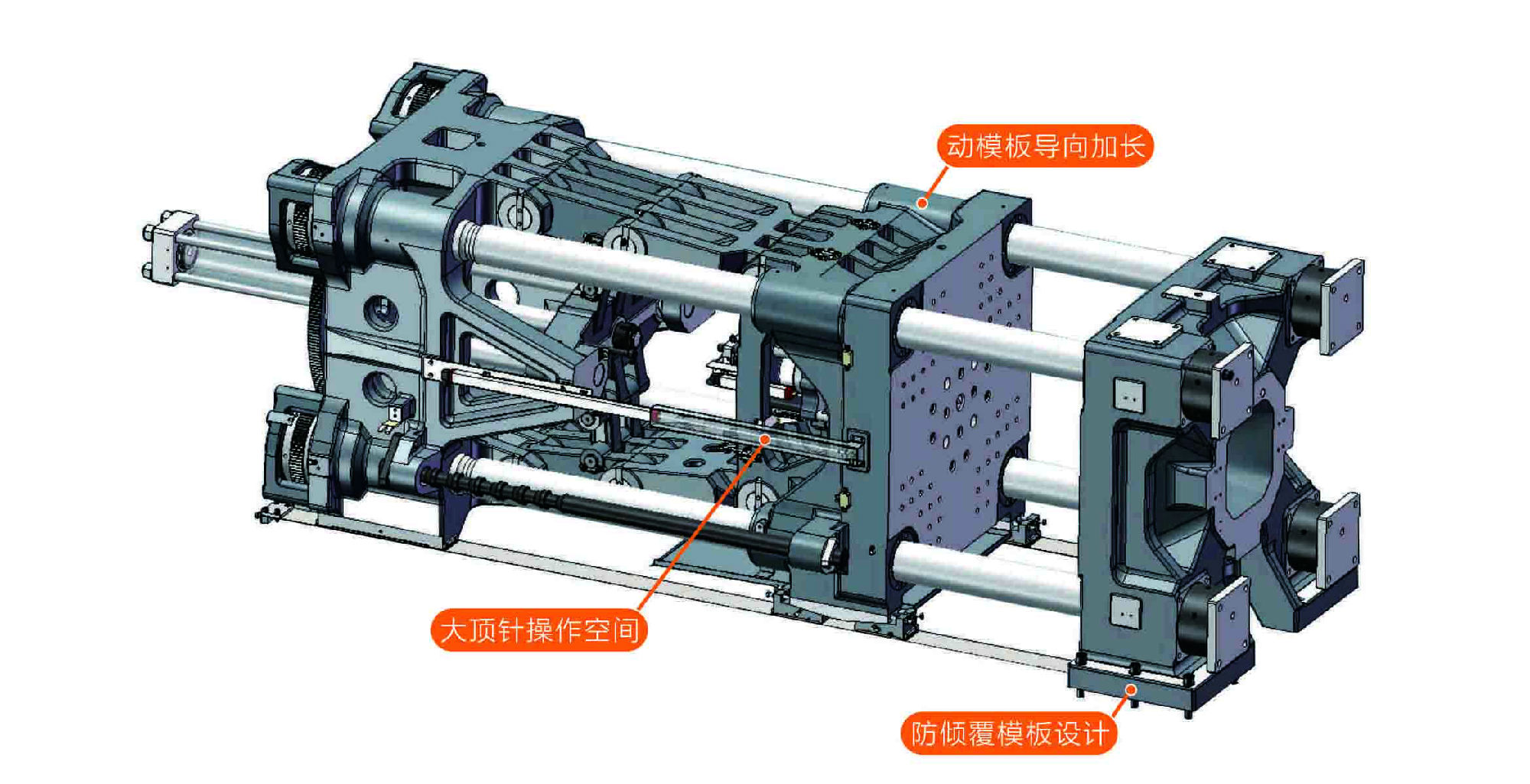 配合薄壁包装模具要求,进一步加强锁模机构刚性。