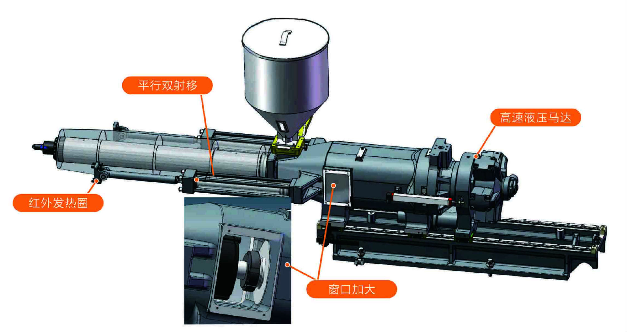 强化锁模系统,强度刚度合模力提升15%-20%。